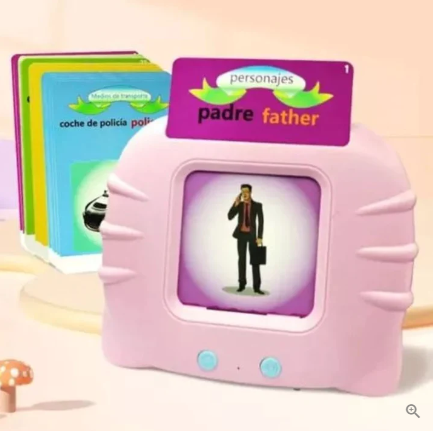 Este juego consta de un dispositivo electrónico interactivo y 112 tarjetas donde tu pequeño aprenderá 224 palabras en inglés / español de forma fácil y divertida.